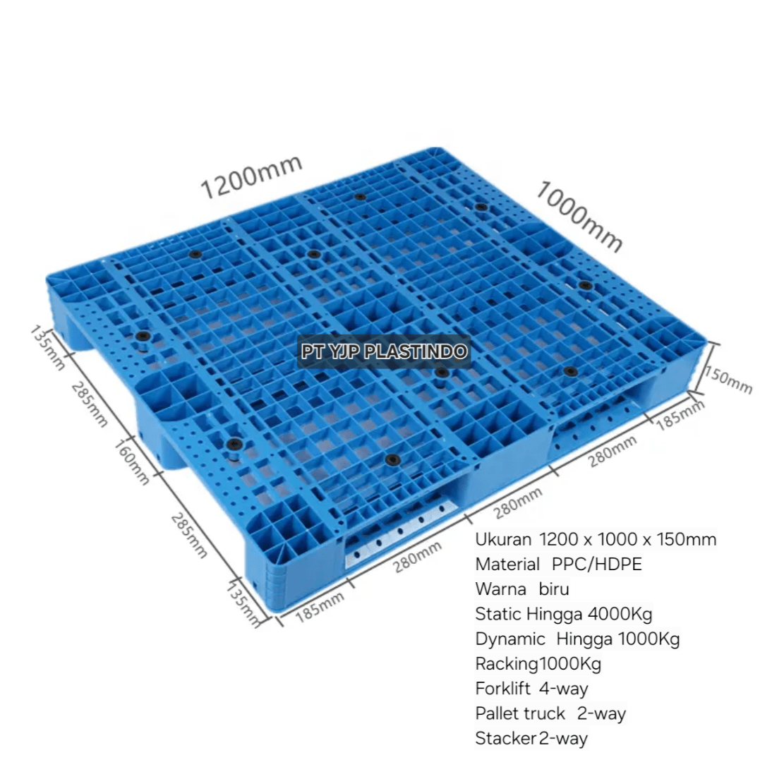 Pallet plastik berkualitas tinggi yang kuat, tahan lama, dan ideal untuk kebutuhan penyimpanan serta distribusi di lingkungan industri.